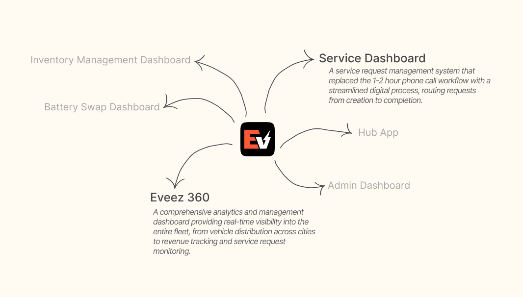 Service requests that took hours now take minutes. Fleet data that required manual compilation is now real-time. During my internship at Eveez, I designed the internal operations platform from scratch that transformed how they manage 6,500+ electric vehicles across multiple cities and hubs.